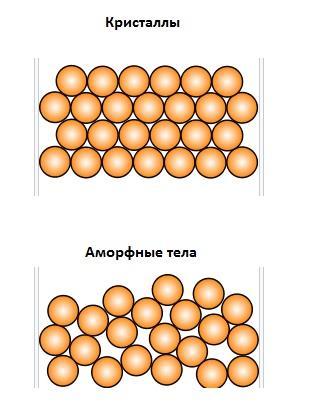 В кристаллических телах атомы и молекулы имеют плотную упаковку.
