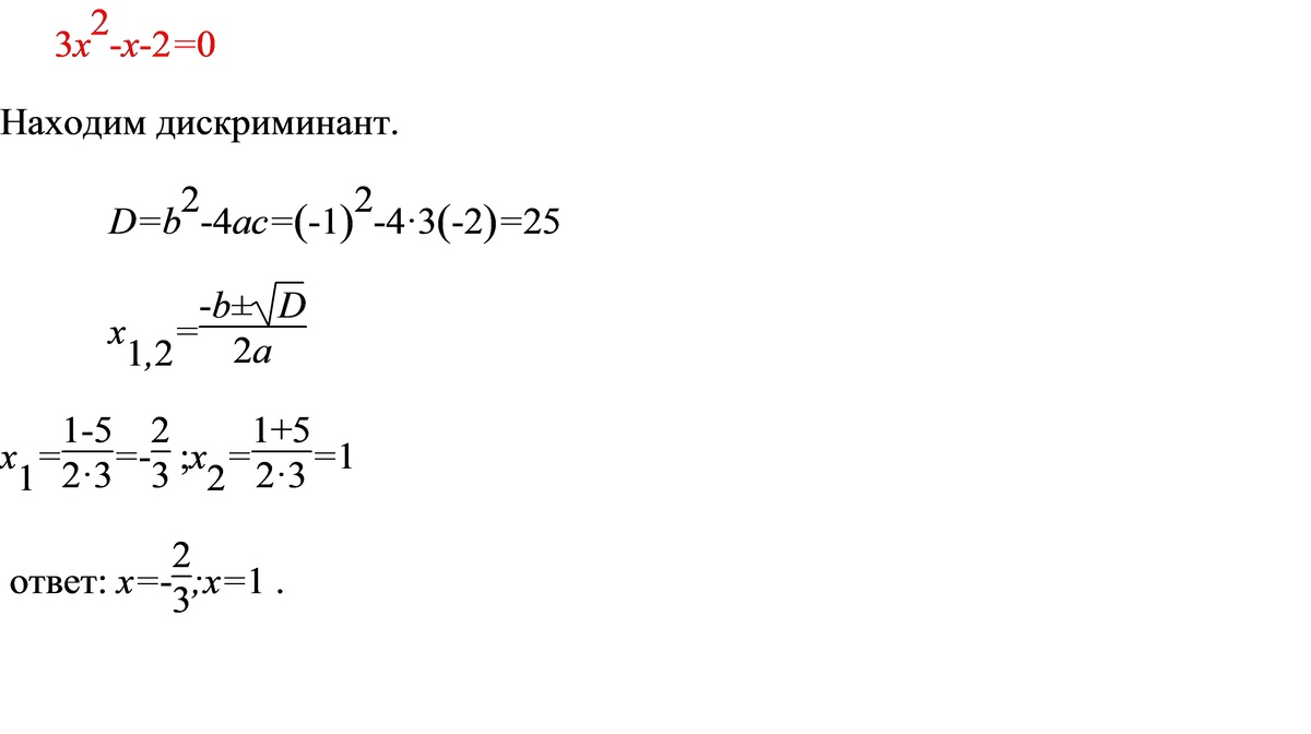 Д=1во второй-4*3*(-2)=1+24=25>0 => 2 различных корня