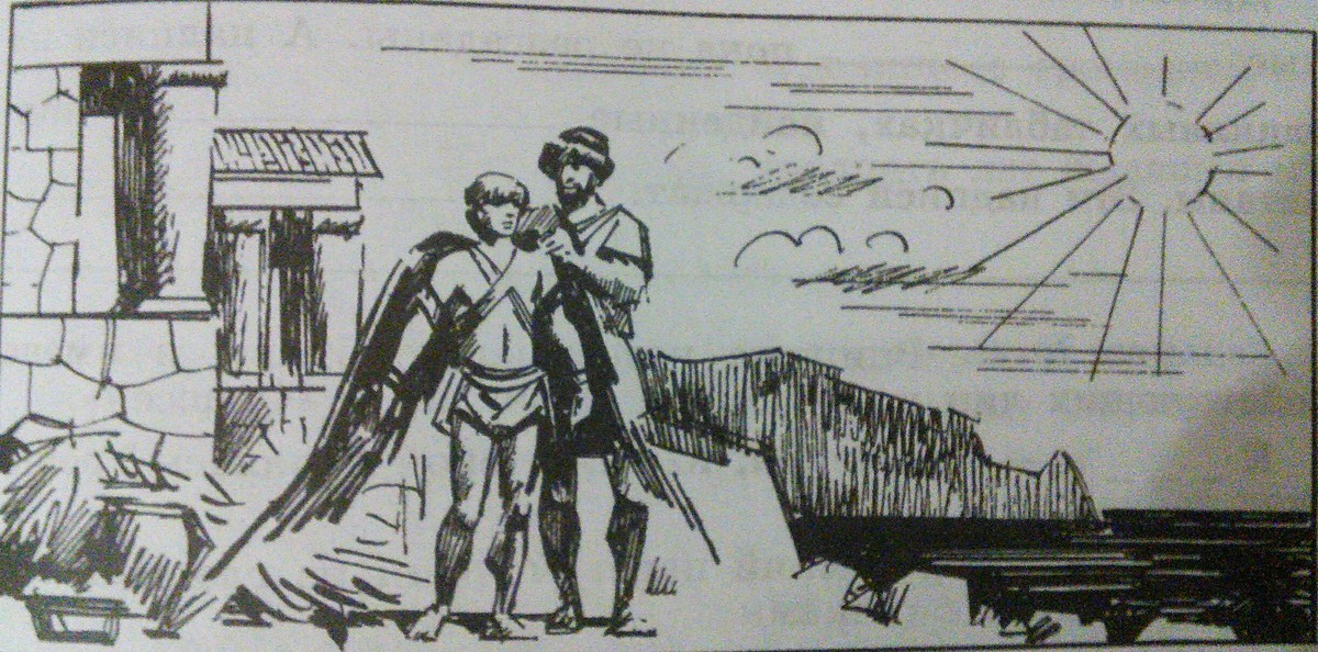 Опишите рисунок. Чем заняты отец и сын? Как их звали? Какова былы дальнейшая судьба обоих?
