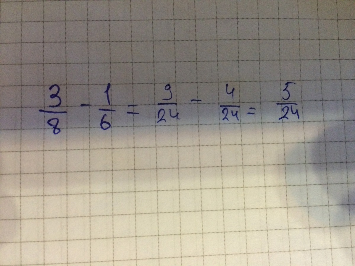 3/8-1/6=3/8*3/3-1/6*4/4=9/24-4/24=5/24