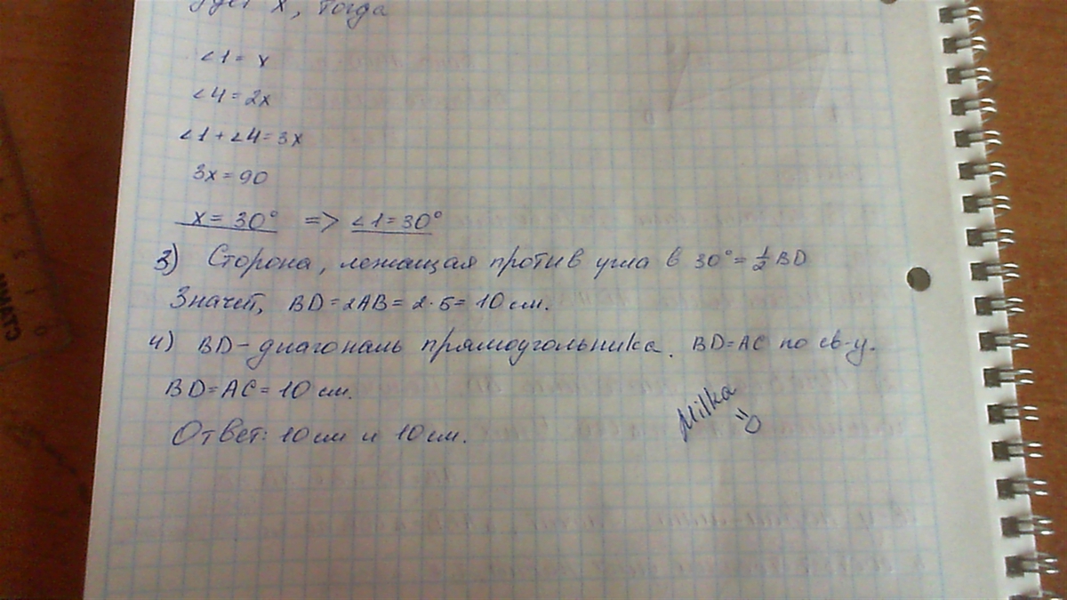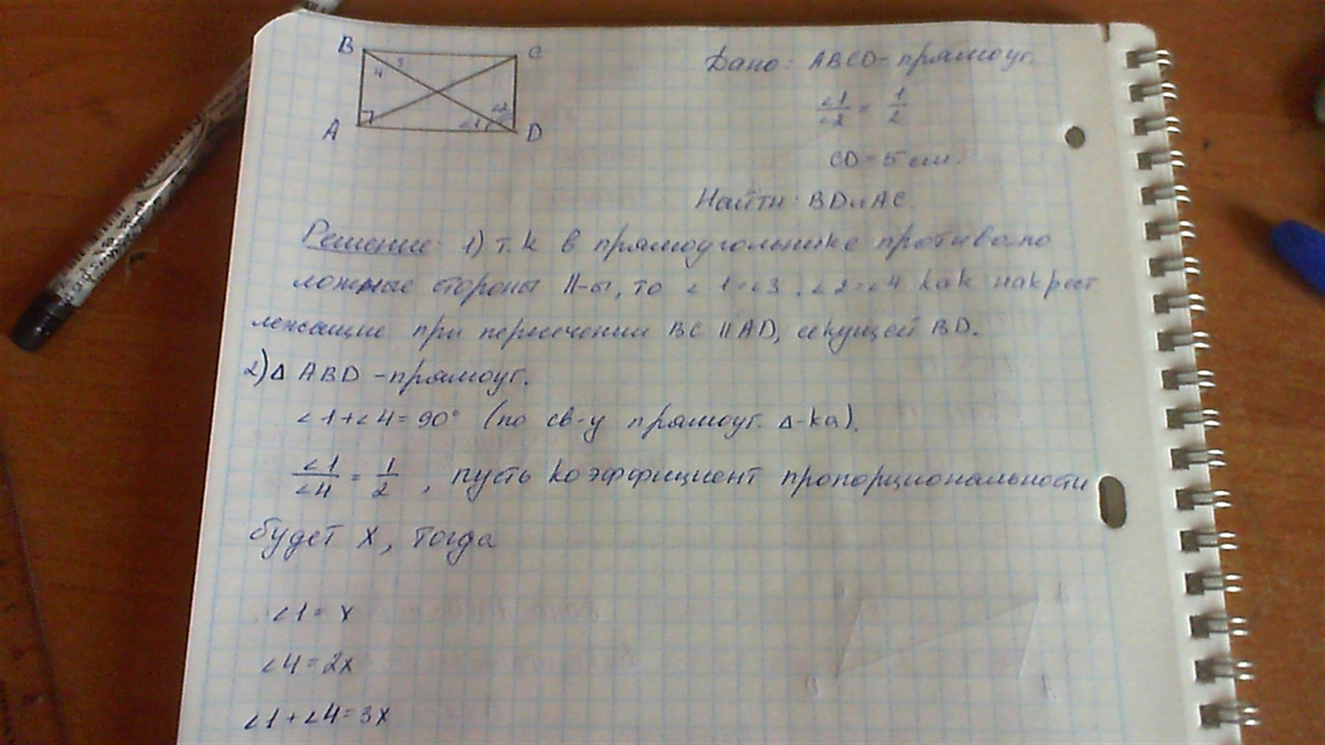 В прямоугольнике диагональ делит угол в отношение 1:2, меньшая его сторона равна 5 см. Найдите диагонали данного прямоугольника.