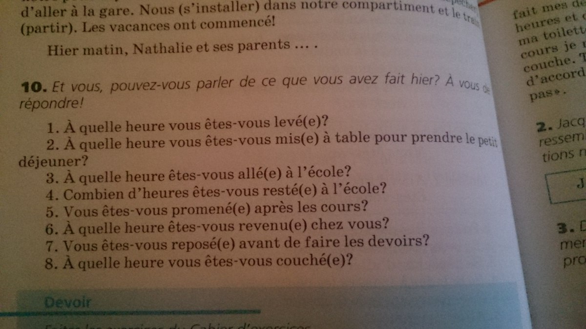 7) Oui, je me suis reposé (reposée) avant de faire les devoirs.