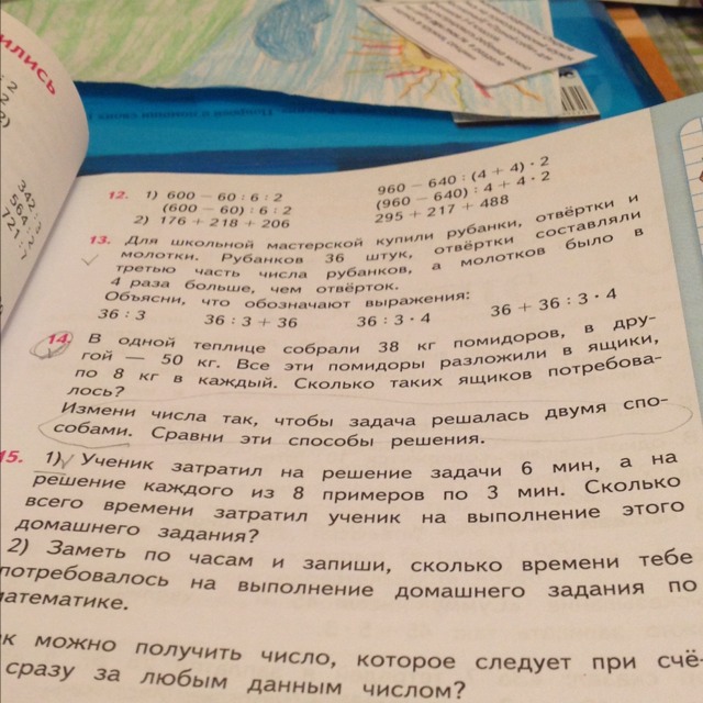Помогите срочно! Номер 14. Самое главное нужно сделать задание: измени числа так, чтобы задача решалась двумя способами. Сравни эти способы решения.
