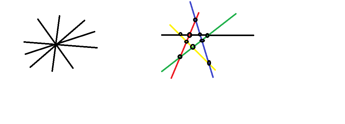 на плоскости проведено пять попарно пересекающихся прямых.Каким может оказаться наименьшее количество точек пересечения этих прямых? Наибольшее количество??