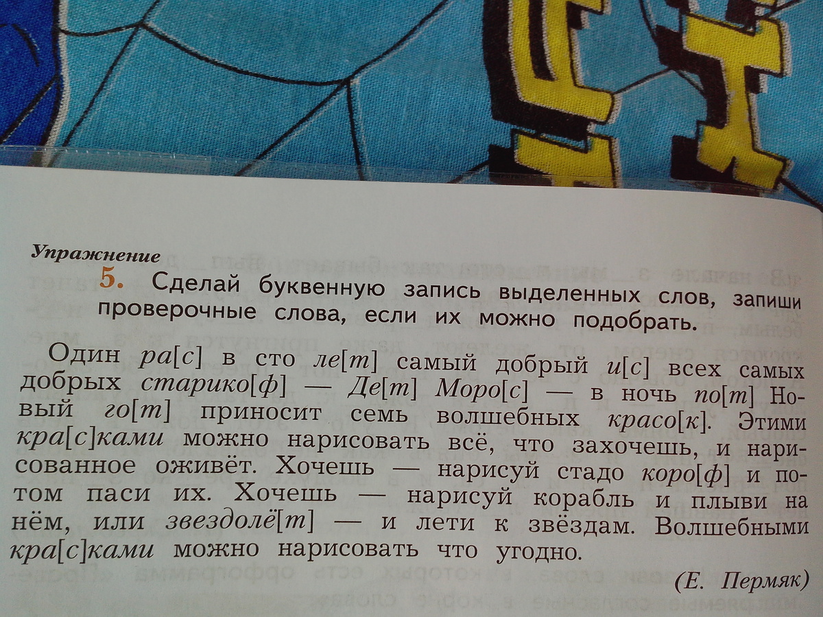 проверочные слова- дедушка, морозы,годы,краски,красочный,коровы,летать,красочный, на слова, раз, лет, из, стариков, под проверочных слов не нашла