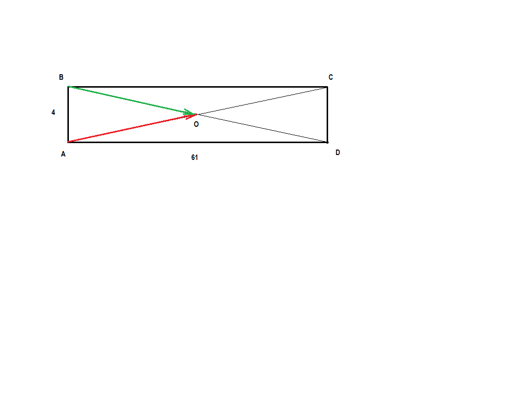 в прямоугольнике ABCD известны AB =4 и AD=61. диоганали пересекаются в точке O. найдите длину вектора AO BO решение