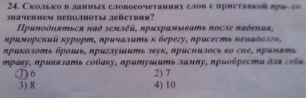 а про приставку ПРИ с неполнотой действия ответ верный -6