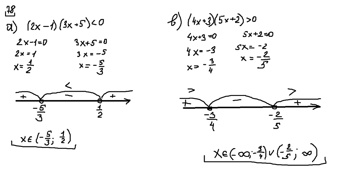 в) (4x + 3) (5x + 2) > 0