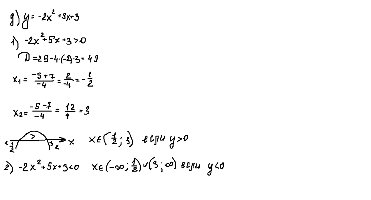 д) у = - 2х в квадрате + 5х + 3