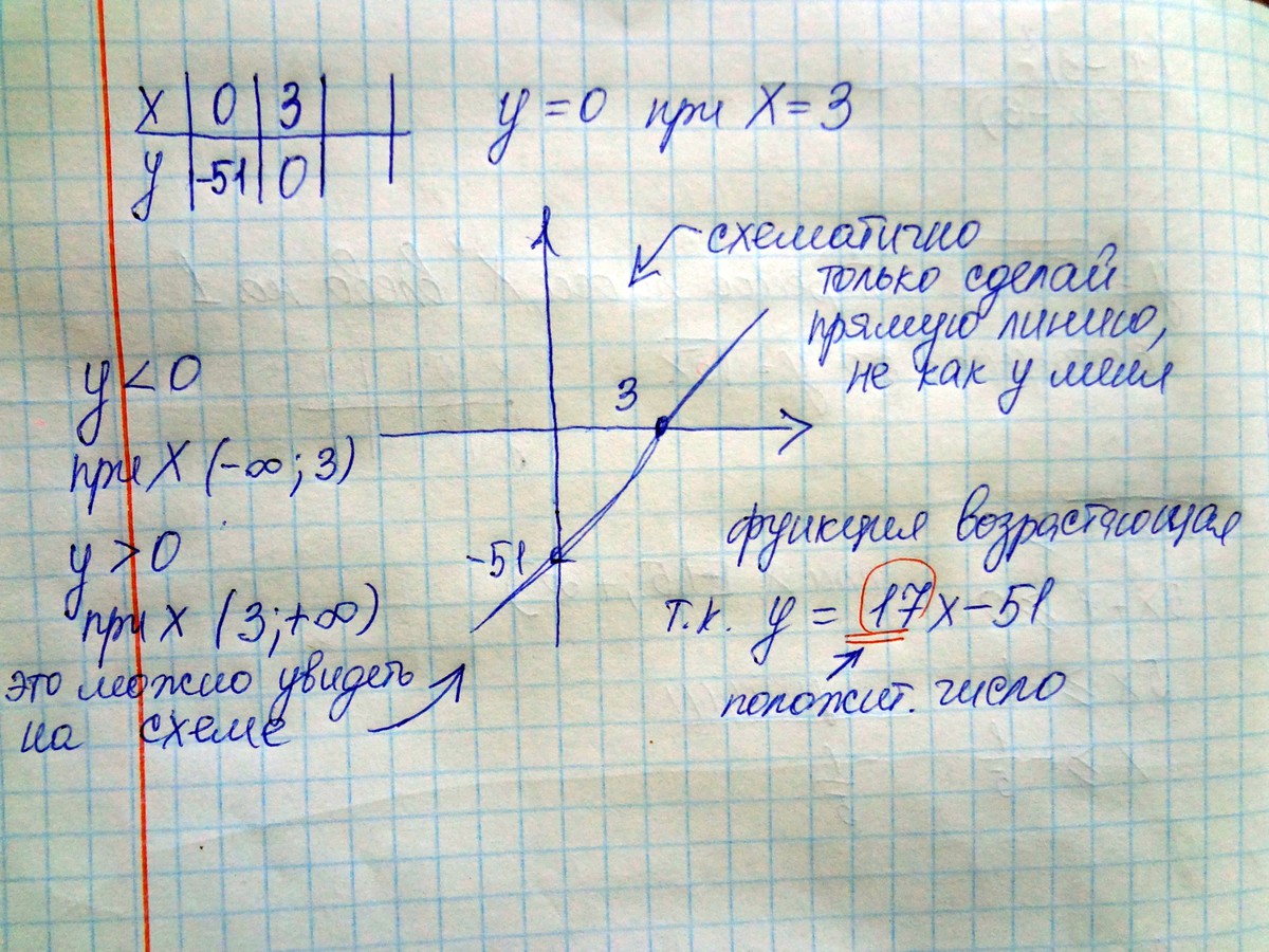 Дана функция f(x) =17x-51.При каких значениях аргумента f(x) =0 f(x)<0 f(X)>0 ? Является ли эта функция возрастающей ли убывающей?