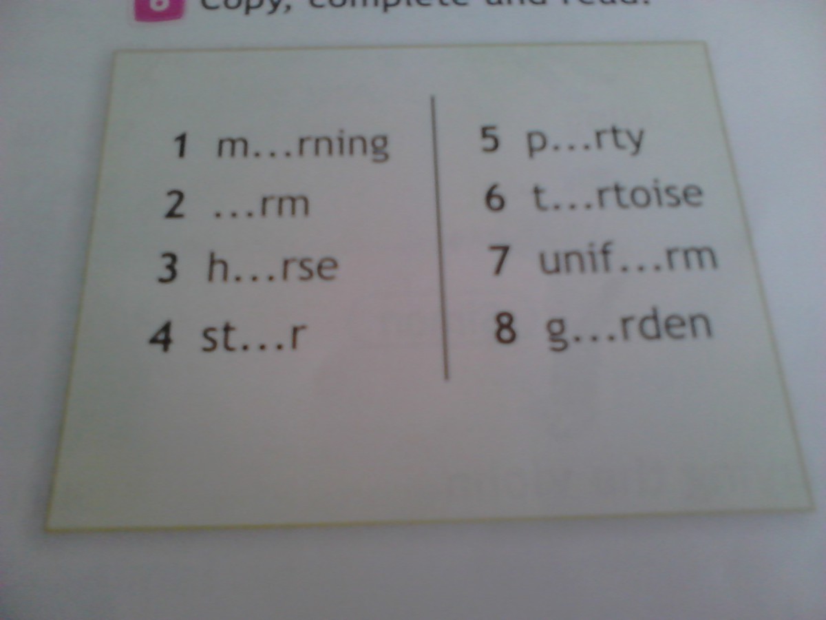 1Morning 2 ? 3 star 4 horse 5 party 6 ? 7 uniform 8 ?