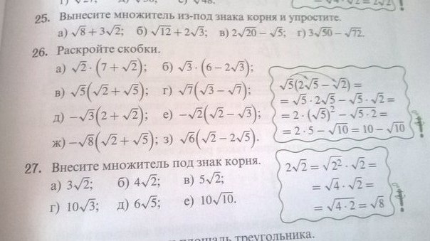 г)√7(√3-√7)=√7√3-√7√7=√21-7