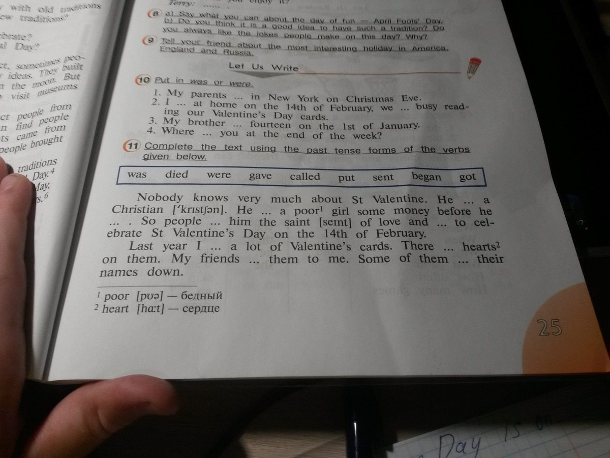 В прошлом году я получил много Валентинок. На них были сердечки. Мои друзья дали мне их. Некоторые из них подписали свои имена на них.