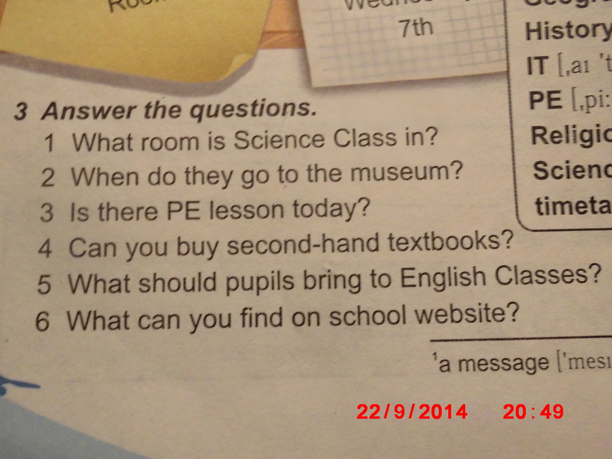 3)сегодня урок PE здесь?
