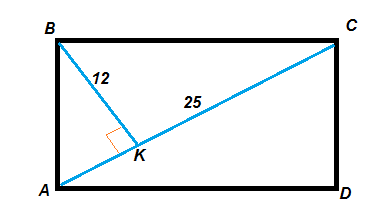 Дано: ABCD - прямоугольник; AC=25, BK = 12.