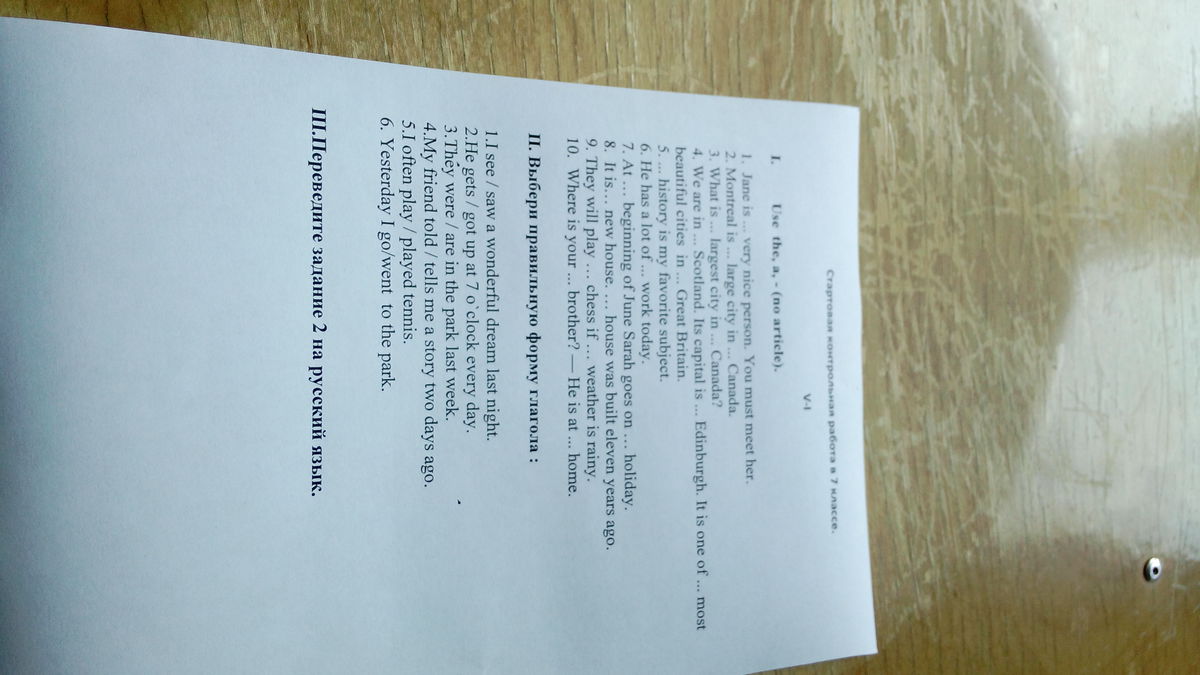 6 Вчера я ходил в парк