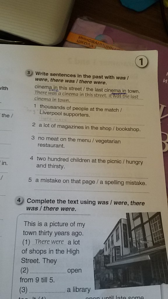 4 There wasn't a bookshop in the village.