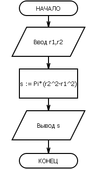 Write('Введите через пробел внутренний и наружный радиусы кольца: ');