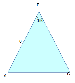 Дано: АВС - трикутник, АВ = 8см, кут В = 150 градусів.