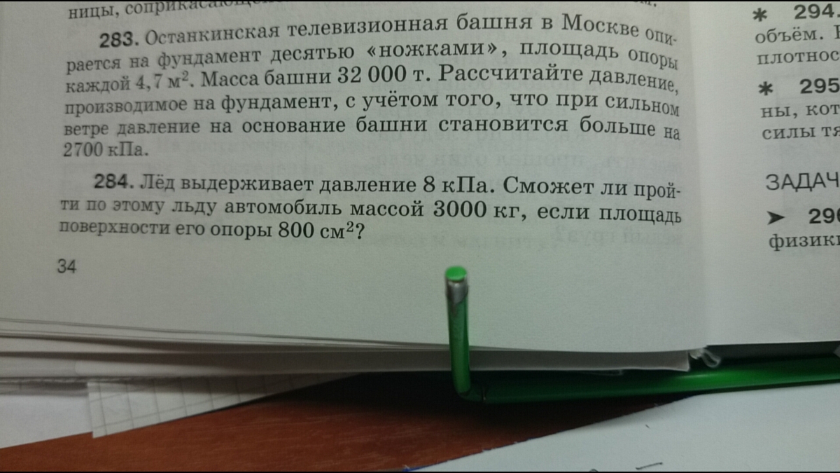P=F/S=(3000 кг *9,8 м/с2)/(800*0,0001 м2)