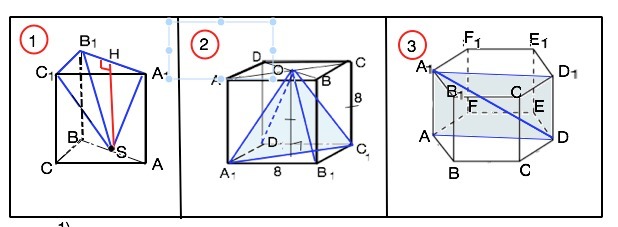 Точка S принадлежит ребру AB прямой призмы ABCA1B1C1. Длина высоты пирамиды SA1B1C1 равно длине отрезка: а)AA1 б) SA1 с) SB1
