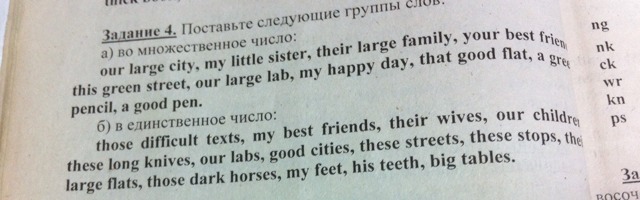 This difficult text, my best friend, his wife, our child, this long knife, our lab, good city, this street, this stop, this large flat, this dark horse, my foot, his tooth, big table