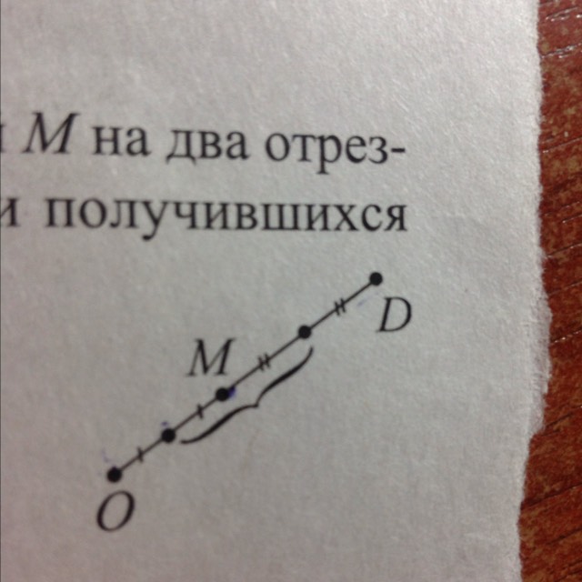 отрезок OD длиной 28мм разделен точкой М на два отрезка. Найдите расстояние между серединами получившихся отрезков OM и MD
