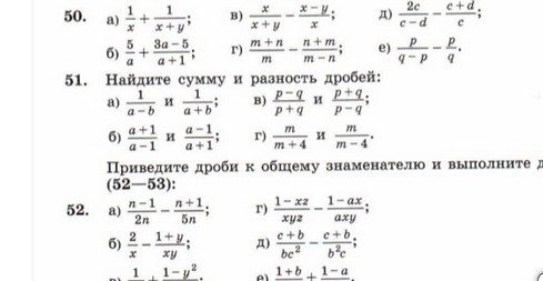 в номере 51 нужно привести дроби к общему знаменателю и вычесть или сложить: