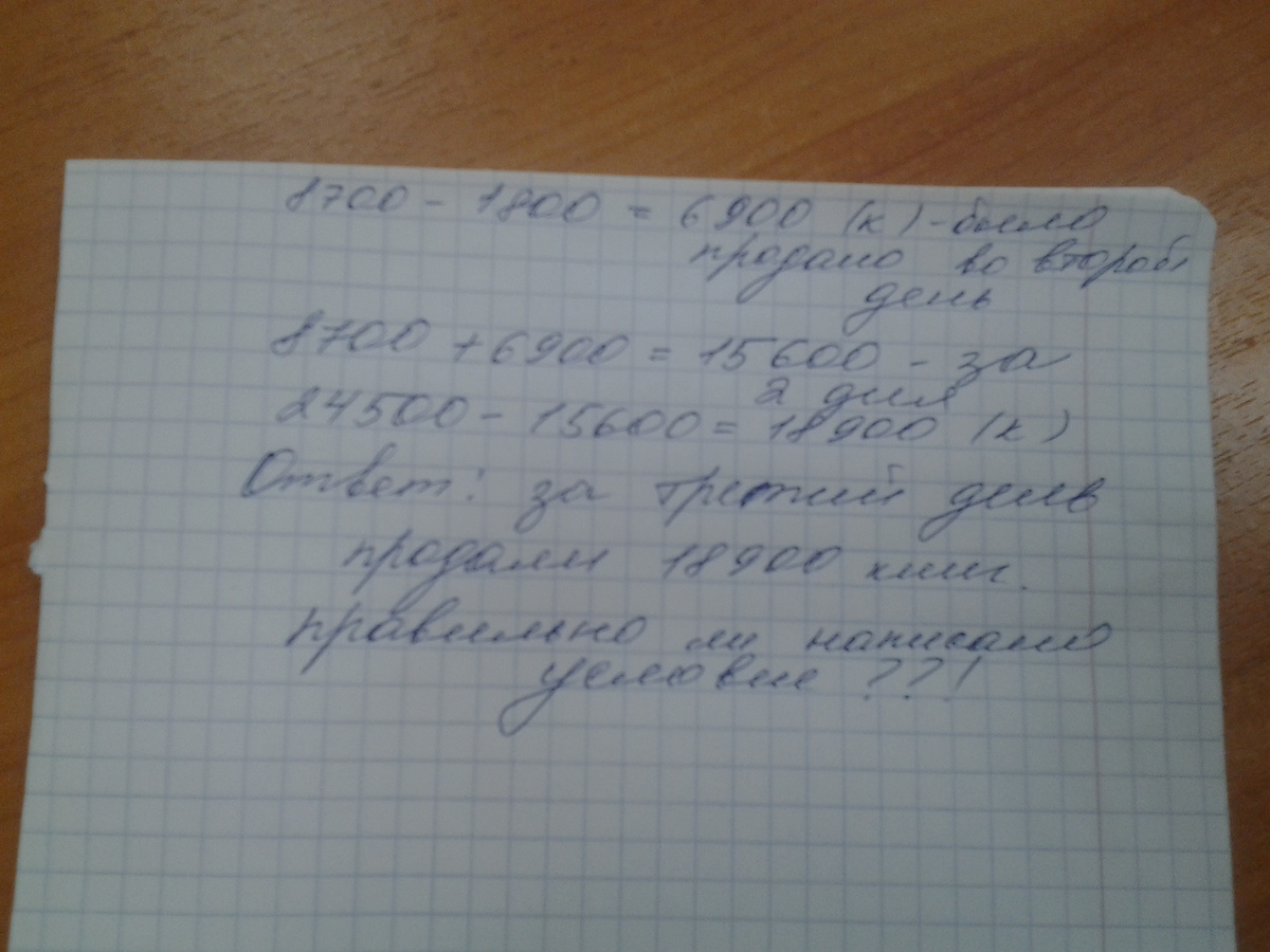 на книжной ярмарке в первый день продали 8 700 книг это на 1 800 книгг больше чем продали во второй день всего за три дня продали 24 500 книг сколько книг продали за три дня?