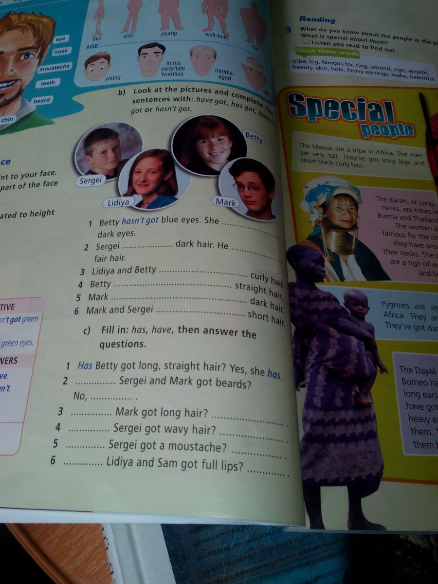 d) 1 has got. 2- hasn't got, has got. 3- haven't got. 4- has got. 5- has got. 6- have got.