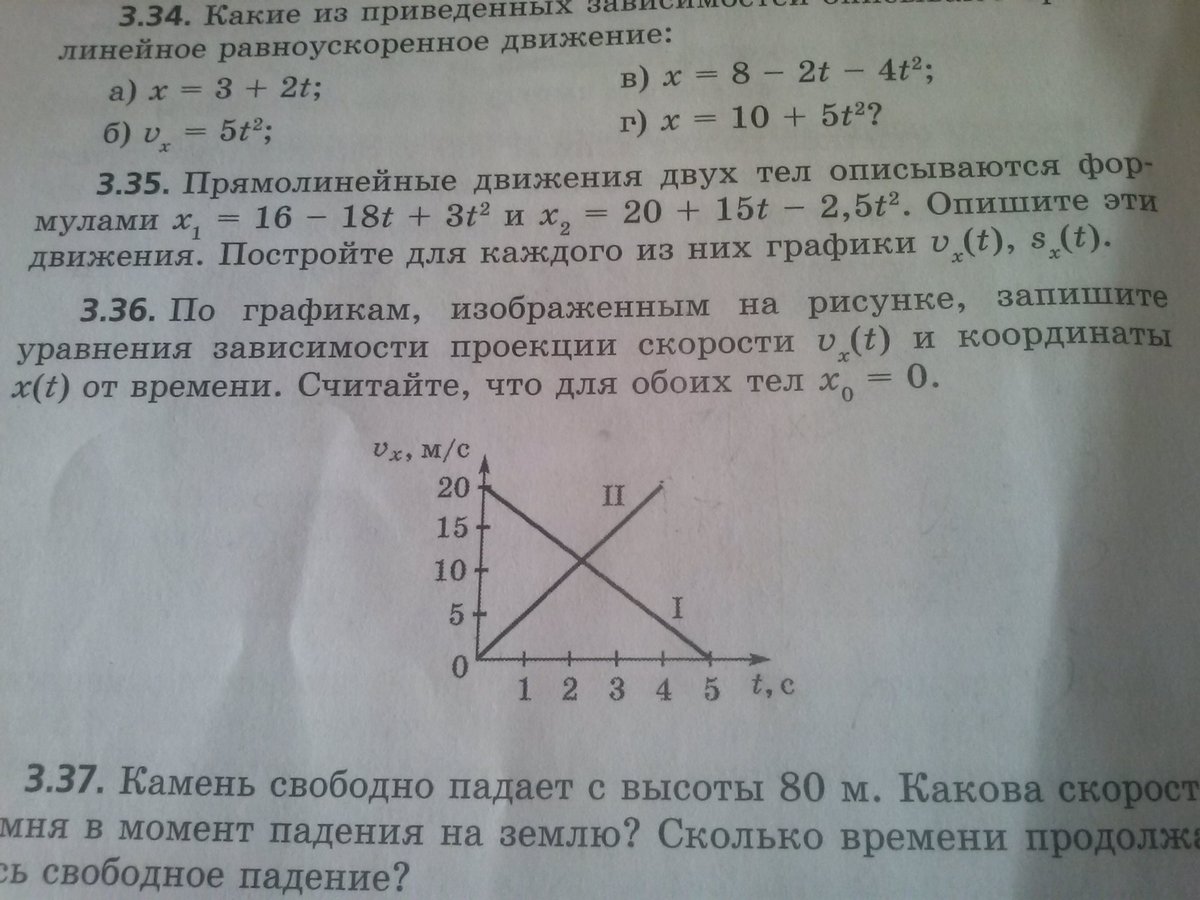 V=Vo+at. для первого движения Vo=20. ускорение а=(V-Vo)/t=(0-20)/5=-4. тогда V=20-4t