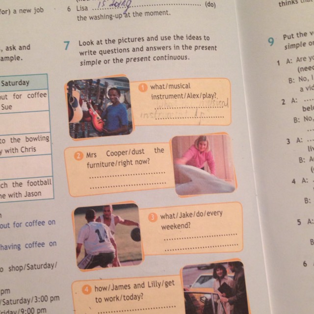 1. What musical instruments does Alex play? - Alex plays the guitar.