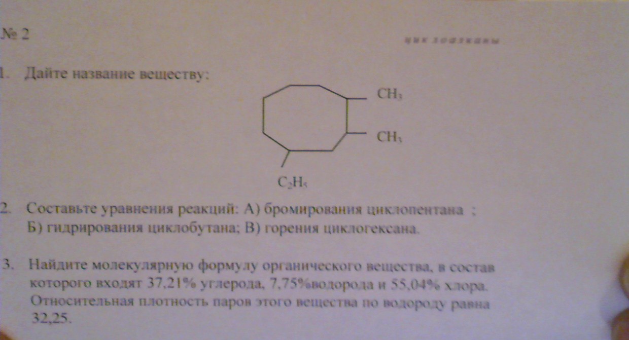 2) а)C5H10(нарисуй просто пяти уголник) + Br2 = CH2Br--CH2--CH2--CH2--CH2Br