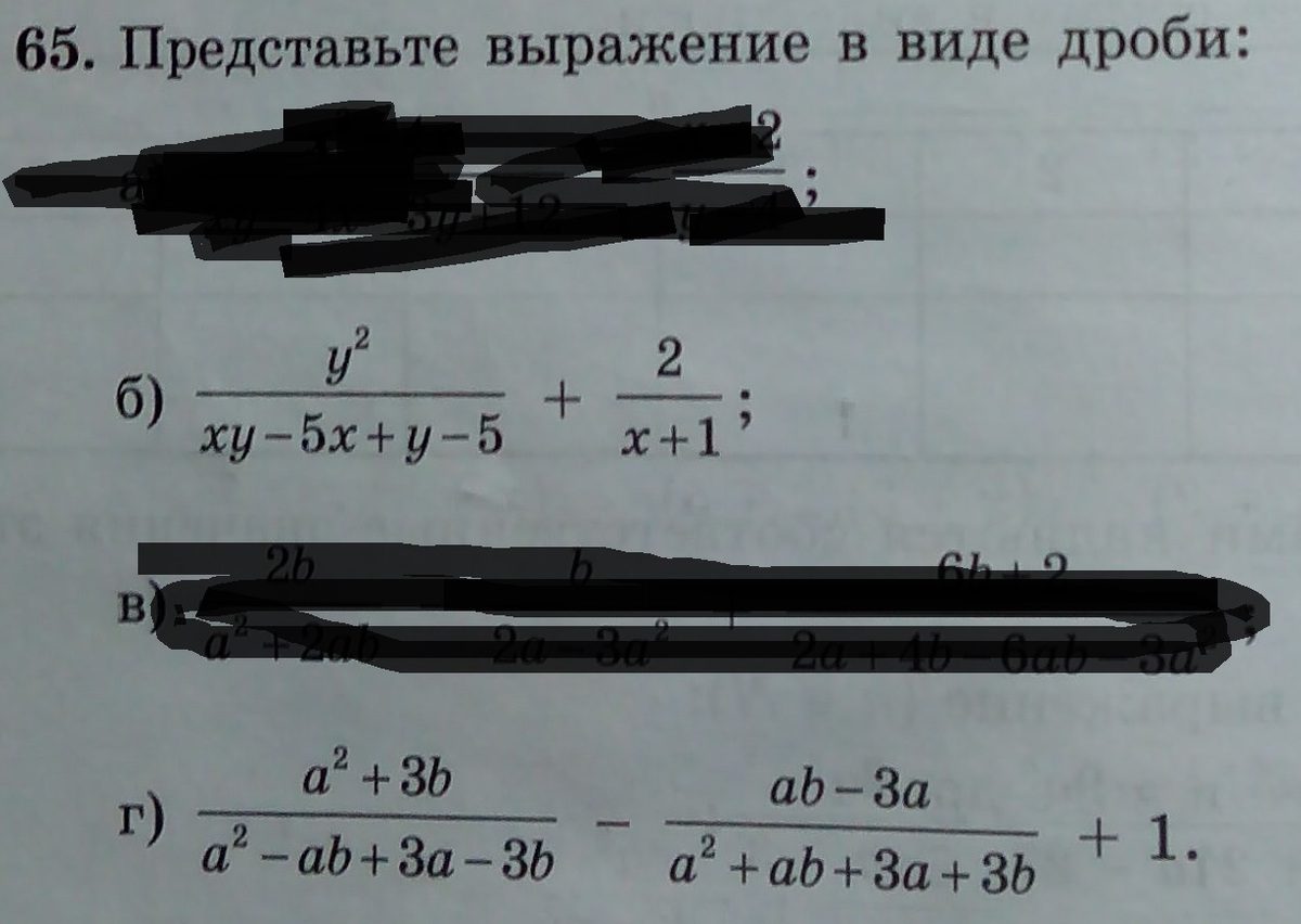 =frac{y^2}{(x+1)(y-5)}+frac{2}{x+1}=\\=frac{y^2+2(y-5)}{(x+1)(y-5)}