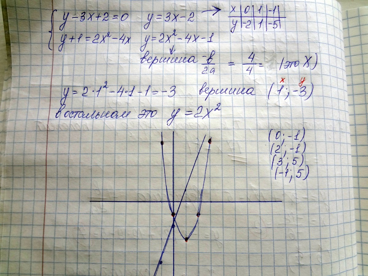 построите график функции : Большая фигурная скобка: у - 3х + 2 = 0