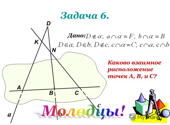 Т. е. точки А, В и С принадлежат двум плоскостям одновременно.