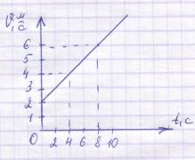По графику скорости определите: а) начальную скорость б) скорость тела через 4 с после начала движения г) запишите уравнение скорости е) найдите перемещение тела за 4 с движения