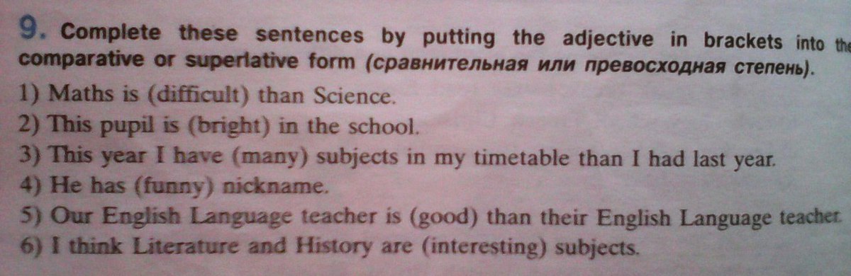 Выполните следующие предложения, поставив прилагательное в скобках в сравнительной или превосходной степени.