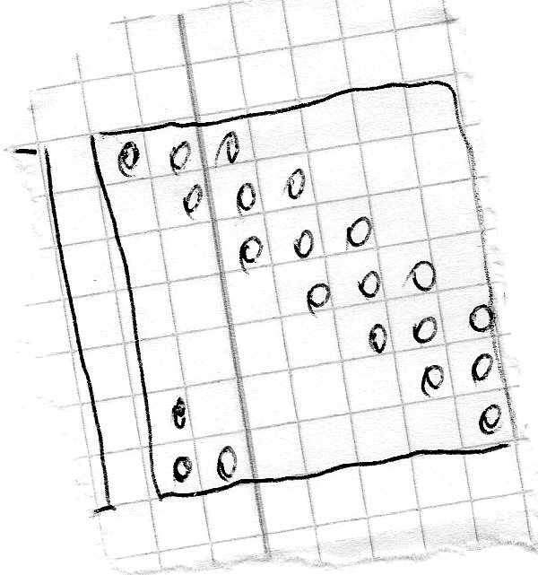 в квадрате 7*7 закрасте некоторые клетки, чтобы в каждом столбце и в каждой строке оказалось по три закрашенной клетки