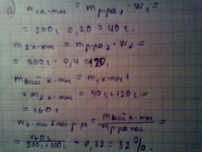 а)Смешали 200г раствора из первой склянки и 300г из второй. Определите массу кислоты и ее долю в полученном растворе.