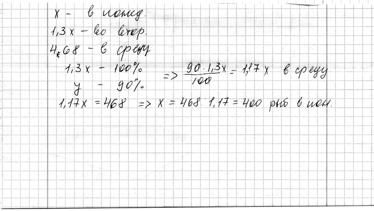 Рыбаки во вторник наловили рыб на 30% больше, чем в понедельник. В среду они наловили 468 рыб, что на 10% меньше, чем во вторник. Сколько рыб наловили в понедельник?