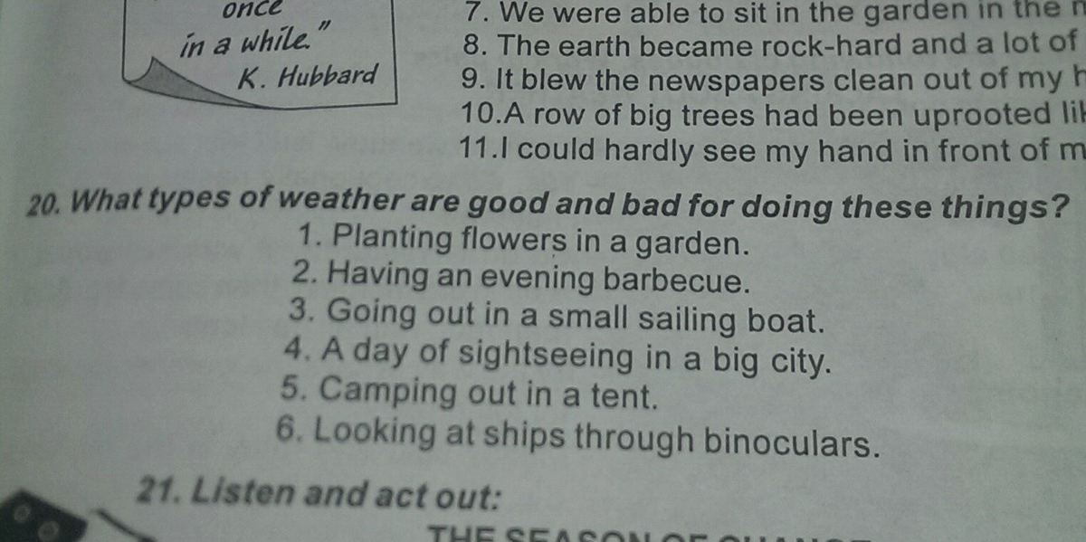 6. Clear and warm weather is good for looking at ships through binoculars.