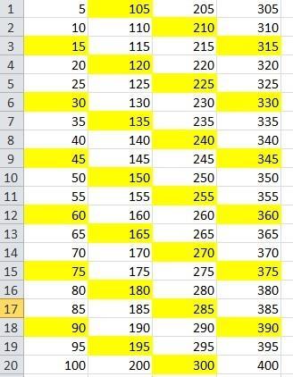 5,10,20,25,35,40,50,55,65,70,80,85,95,100 14 штук,значит в 4 сотнях 56