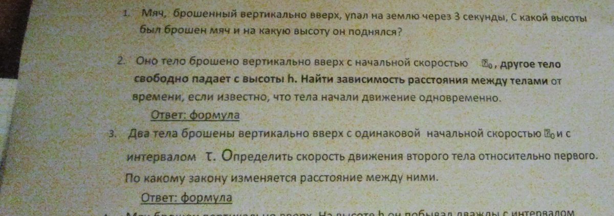 1) если мяч бросить с поверхности земли то t1=t2=t/2=1,5 c