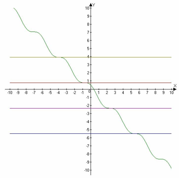 Значение функции в этой точке: y(-1/4*pi)=1/2*cos(2*(-1/4*pi))-(-1/4*pi)=1/4*pi.