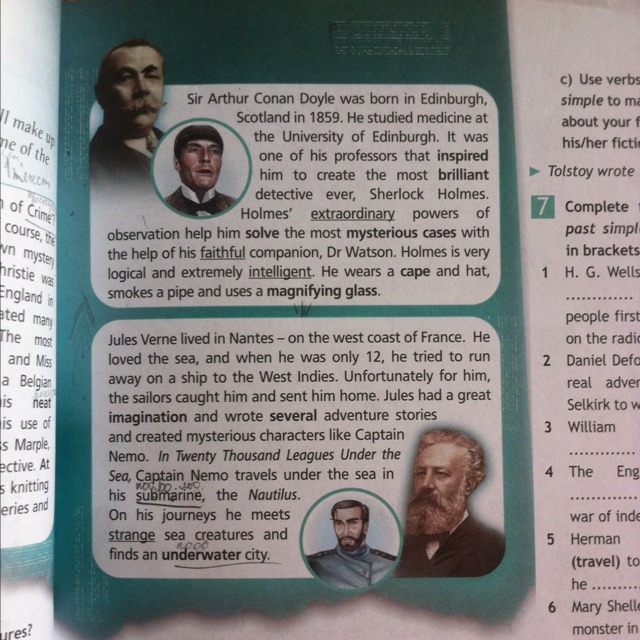 Сэр Артур Конан Дойл родился в Эдинбурге, Шотландии в 1859 году. Он изучал медицину в Эдинбургском Университете. Один из профессоров университета вдохновил его к созданию блистательнейшего детектива всех времен - Шерлок Холмс. Невероятная сила Холмса в наблюдении помогла ему решать мистические дела при помощи его верного компаньона Доктора Ватсона. Холмс очень логичен и чрезвычайно чуток. Он носит накидку и шляпу, курит трубку и использует увеличительное стекло.