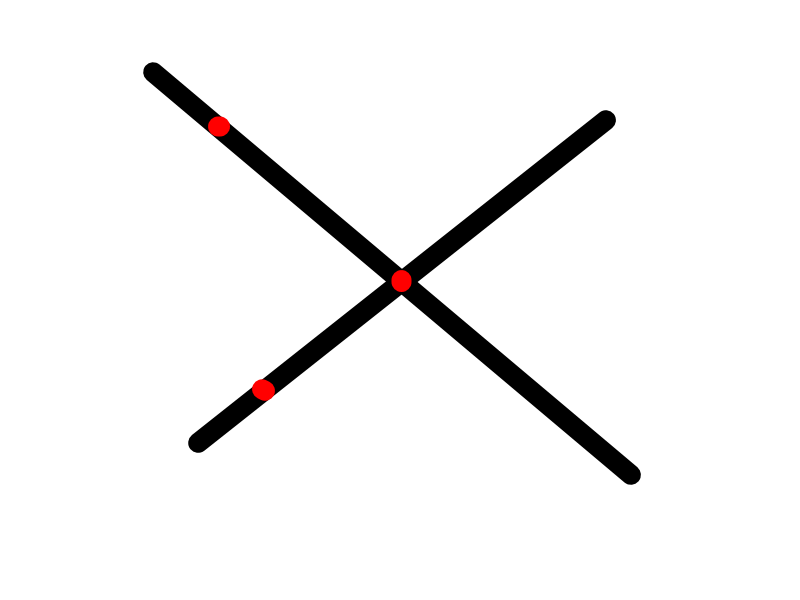 Оля начертила два отрезка и отметила на них 3 точки так, что на каждом отрезке получилось по 2 точки. Попробуй и ты выполнить такой же чертёж.