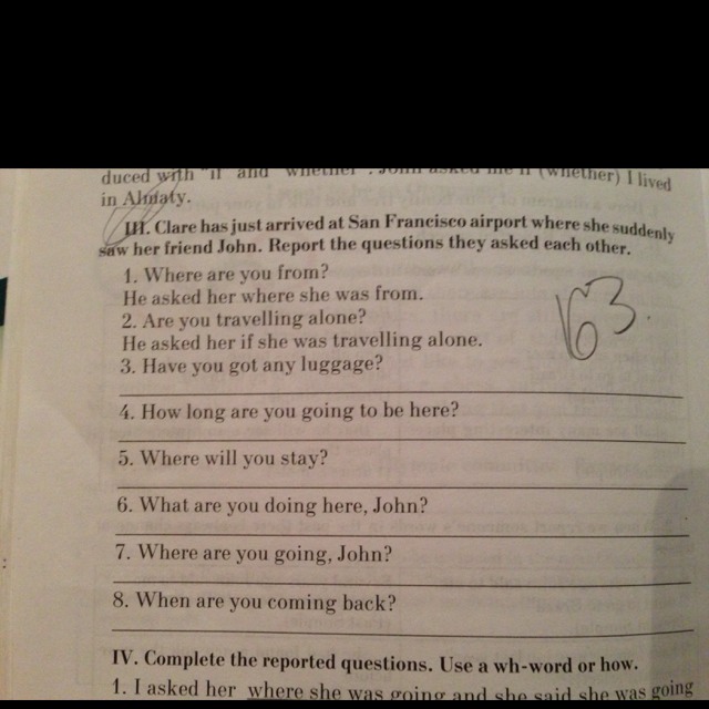 6. She asked him what he was doing here.