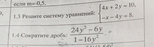 1) решаем методом сложения. умножаем второе уравнение системы на 4 и складываем с первым. получается -14у=42 у= -3. подставляя известный у находим х=4.