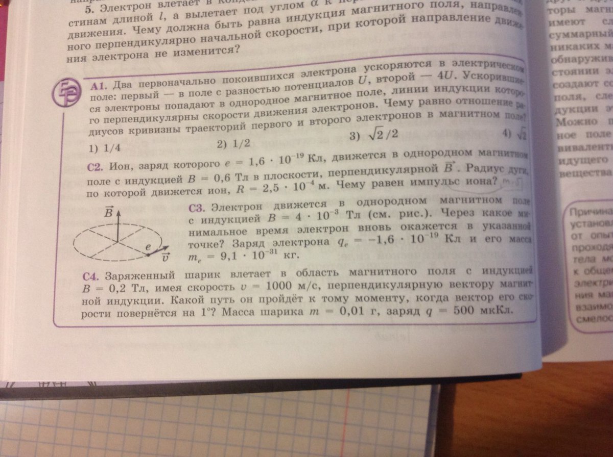 R=(mV)/(qB) ⇒ qBR=mV ⇒ V=(qBR)/m = 0,26*10^8 м/с